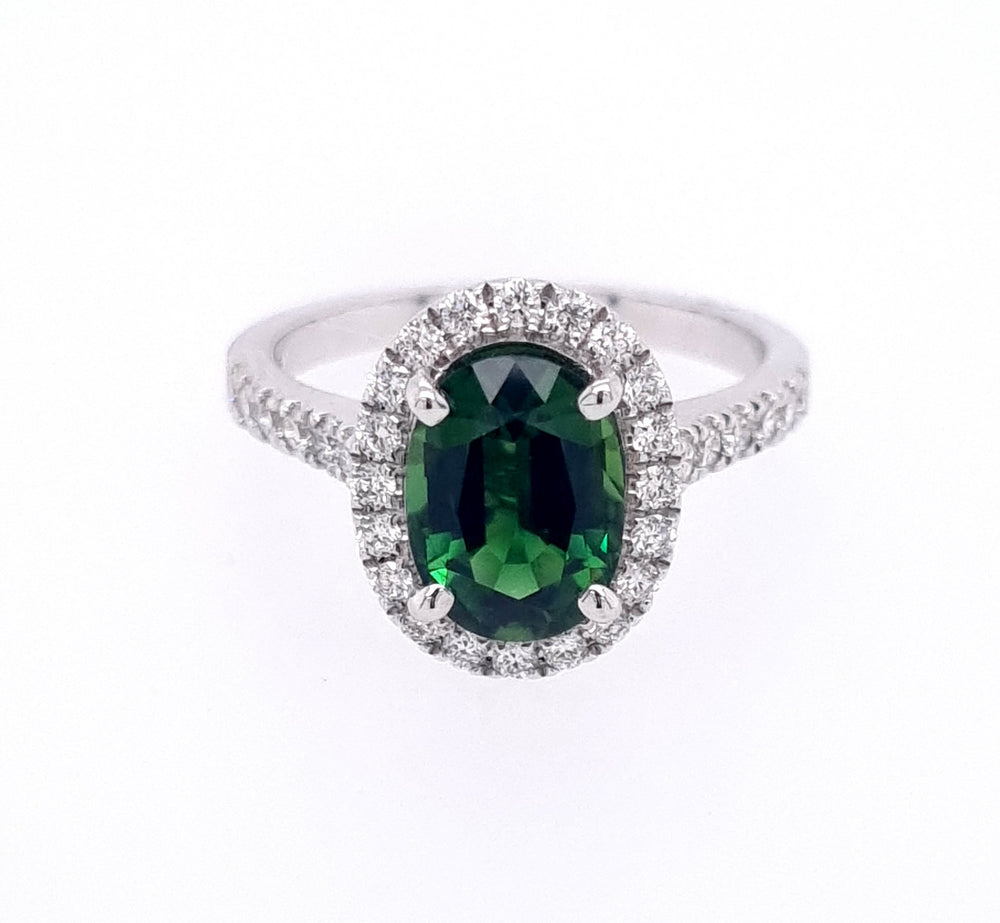 18ct White Gold Natural Chrome Green Tourmaline And Diamond Ring