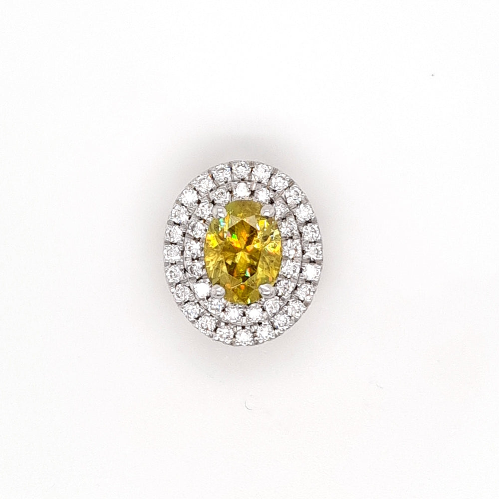 9ct White Gold Double Halo Sphene and Diamond Pendant