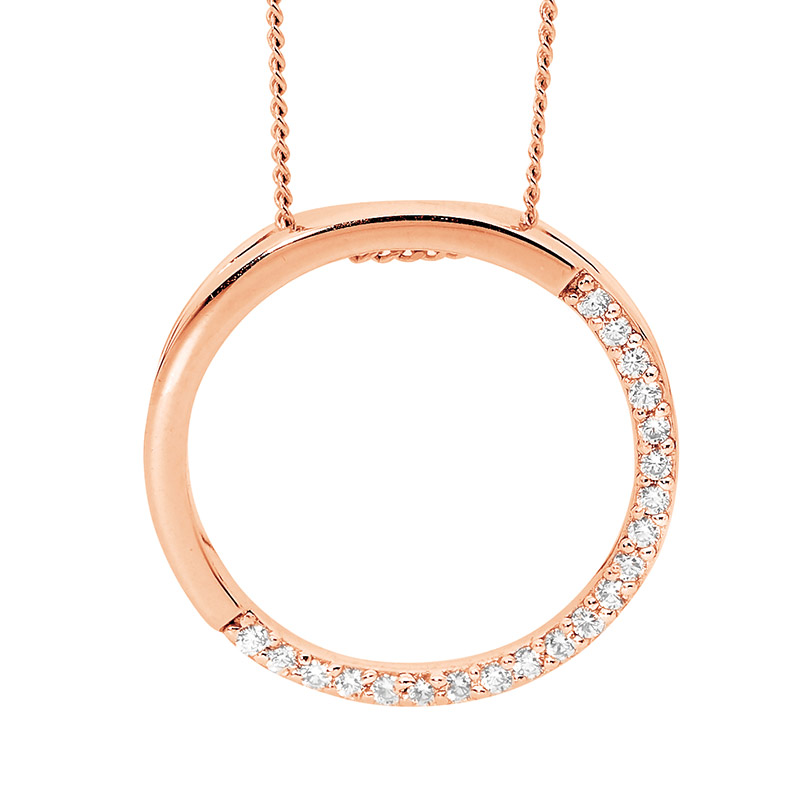 Sterling Silver 20mm open circle with half white CZ pendant and rose gold plating.