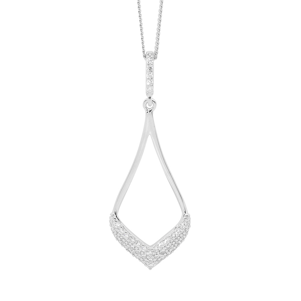 Sterling silver open tear drop pendant 40mm with white pave set CZ''s.
