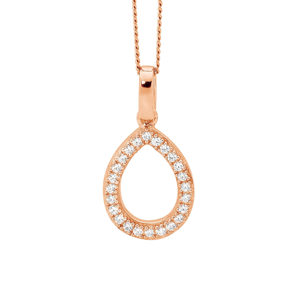 Sterling silver white CZ drop tear pendant with rose gold plating.