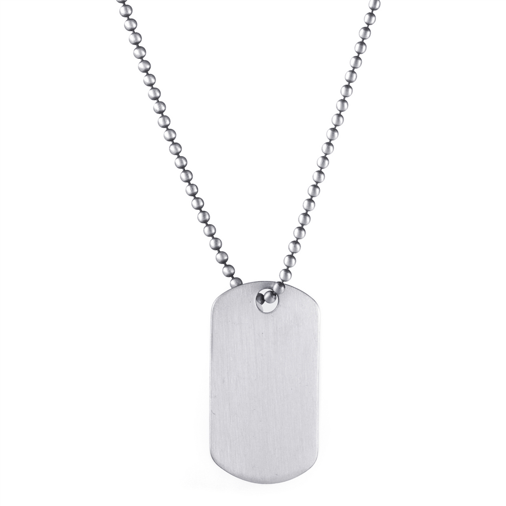 Cudworth Brushed steel single dog tag pendant with a stainless steel 55cm ball chain.