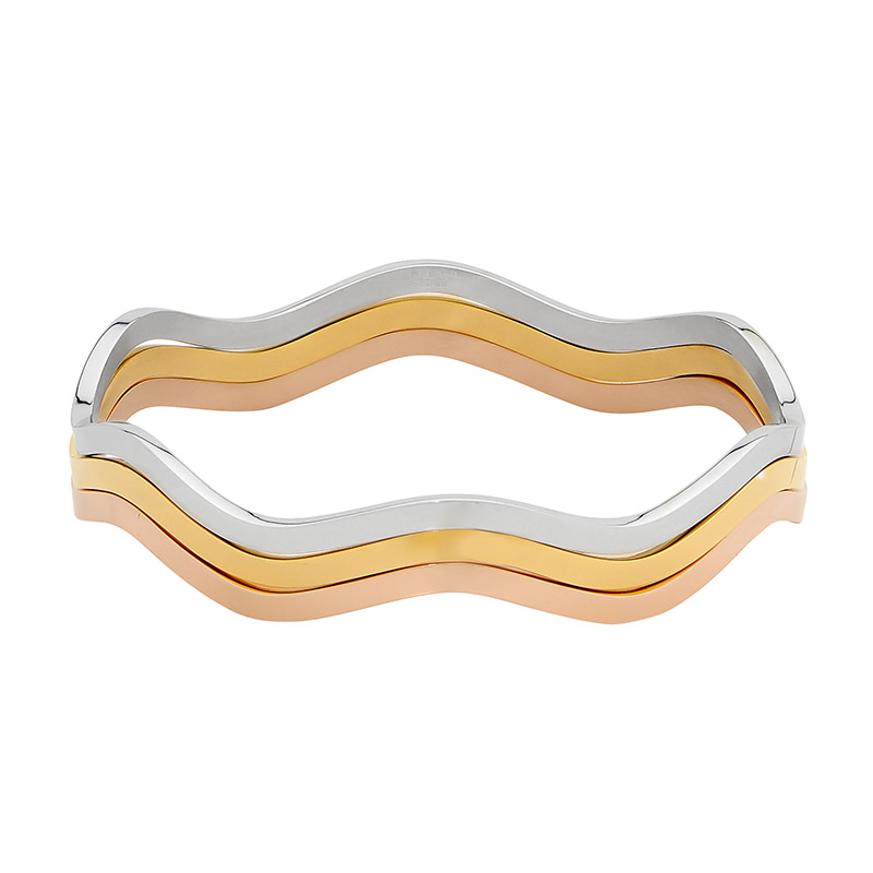 Stainless steel 3-tone rose & gold IP plated triple wave bangle.