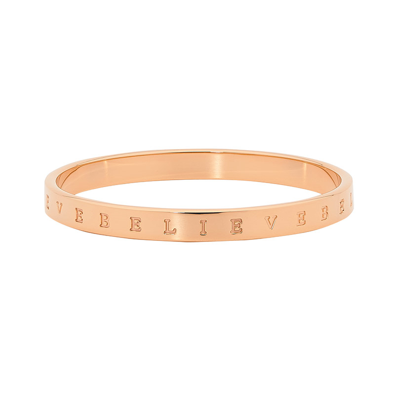 Stainless steel believe 7mm wide bangle with rose gold IP plating.