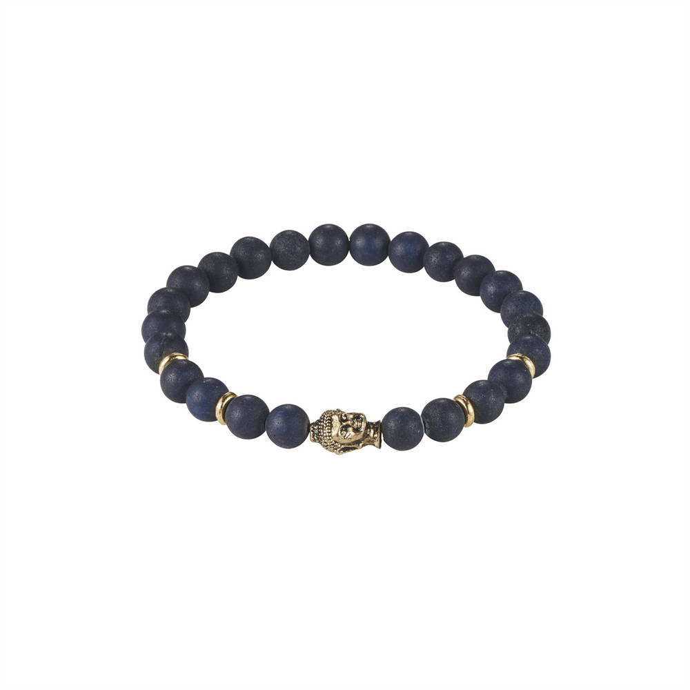 631-71 Cudworth Dark Blue Agate Ip Gold Stainless Steel Buddha Bead Bracelet