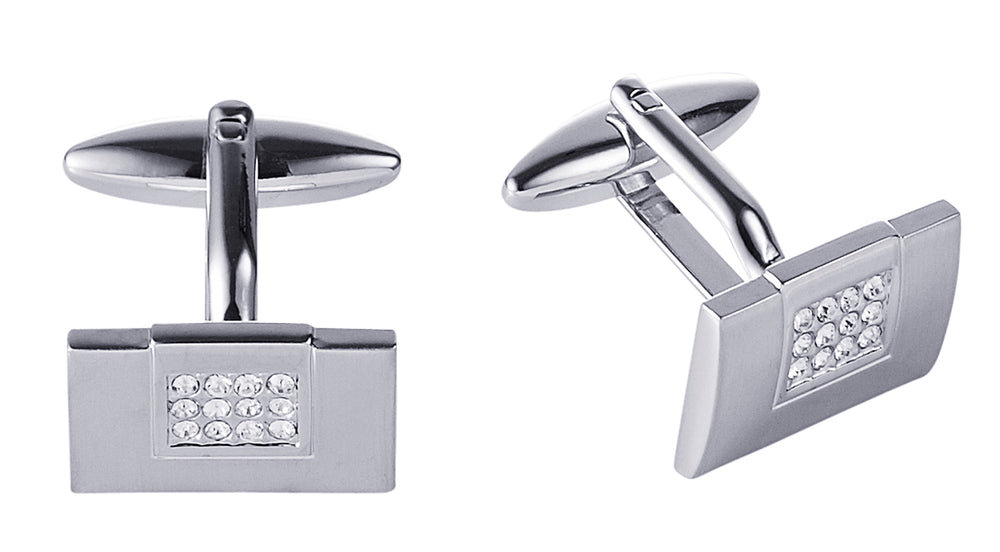 Stainless Steel Brushed And Crystal Cufflinks