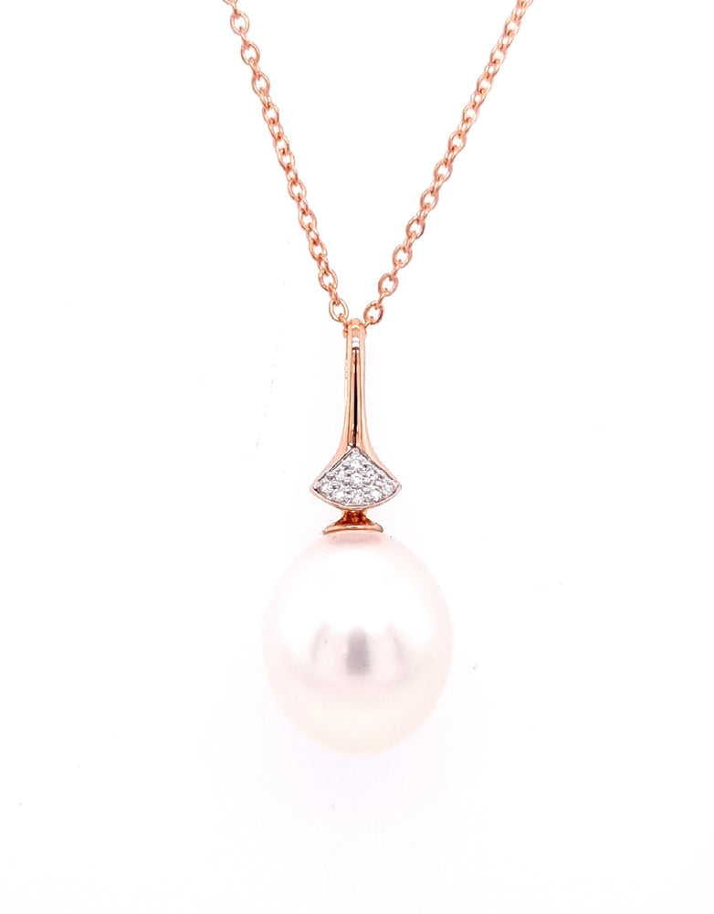 14ct Rose Gold 11.5-12mm South Sea Pearl and Diamond Drop Pendant