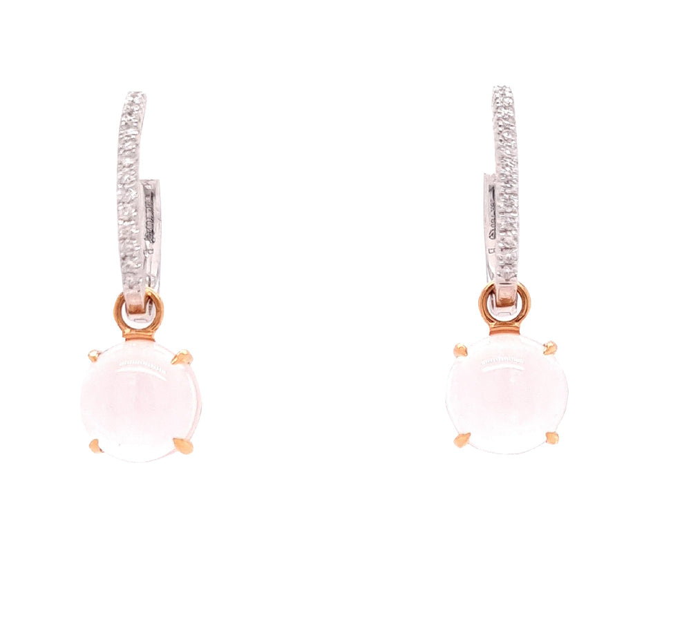 18ct Rose And White Gold Diamond And Pink Quartz Huggie Drop Earrings