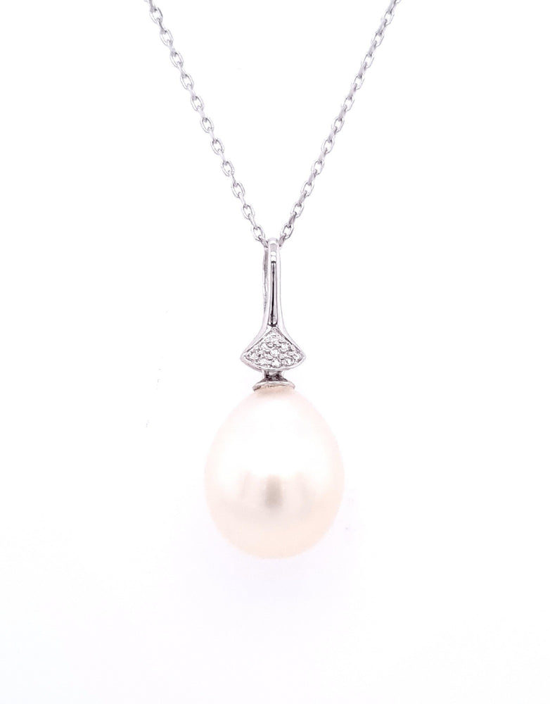18ct White Gold 12-12.5mm South Sea Pearl and Diamond Drop Pendant