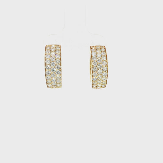 Elevate your everyday style with these radiant hoop earrings, meticulously crafted in gleaming yellow gold. Each earring features a dazzling array of round brilliant-cut diamonds, creating a luxurious and captivating sparkle. These earrings offer a perfect balance of classic design and modern flair, adding a touch of sophistication to any ensemble.