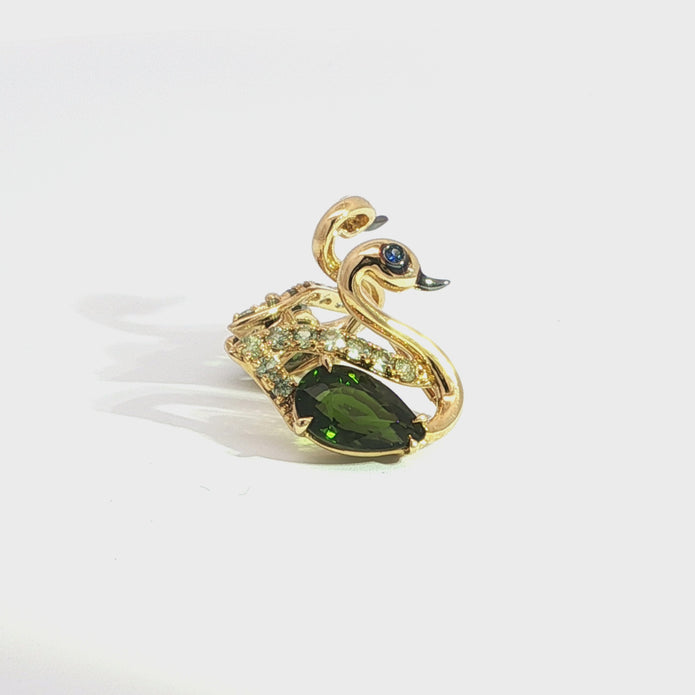 Embrace vintage elegance with this exquisite swan stud earrings, meticulously crafted in yellow gold. The design showcases a pear-shaped, brilliant-cut emerald, exuding a rich green hue. This piece embodies timeless charm and sophistication, perfect for adding a touch of refined beauty to any ensemble.