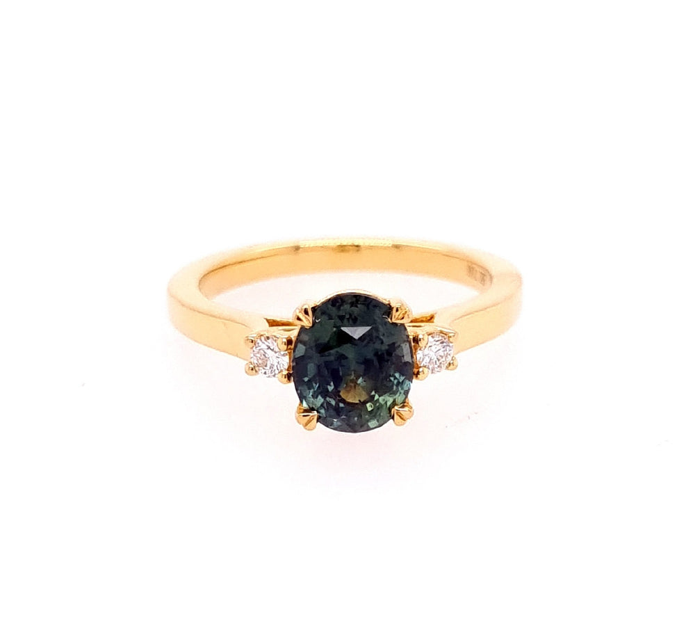 18ct Yellow Gold Trilogy Sapphire And Diamond Ring