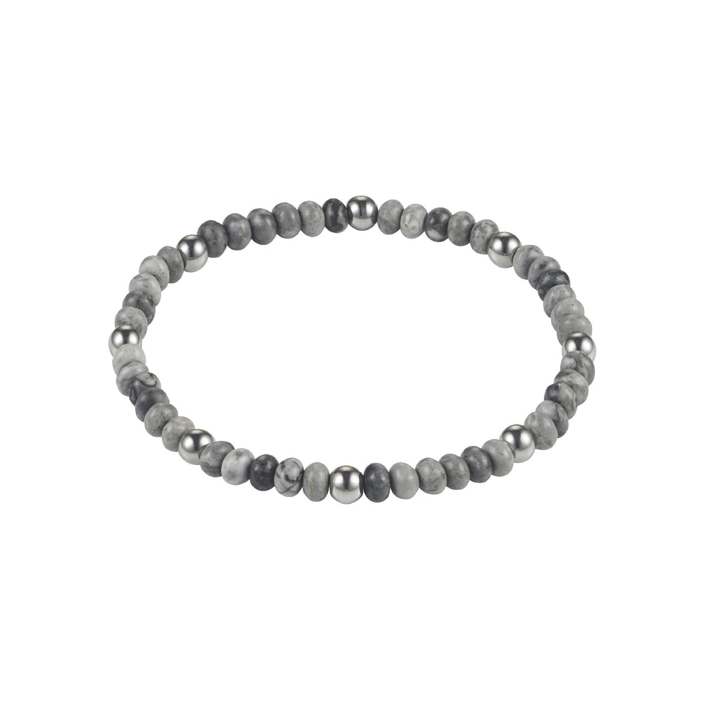 6mm Grey Jasper Stone Beads/stainless Steel Bracelet
