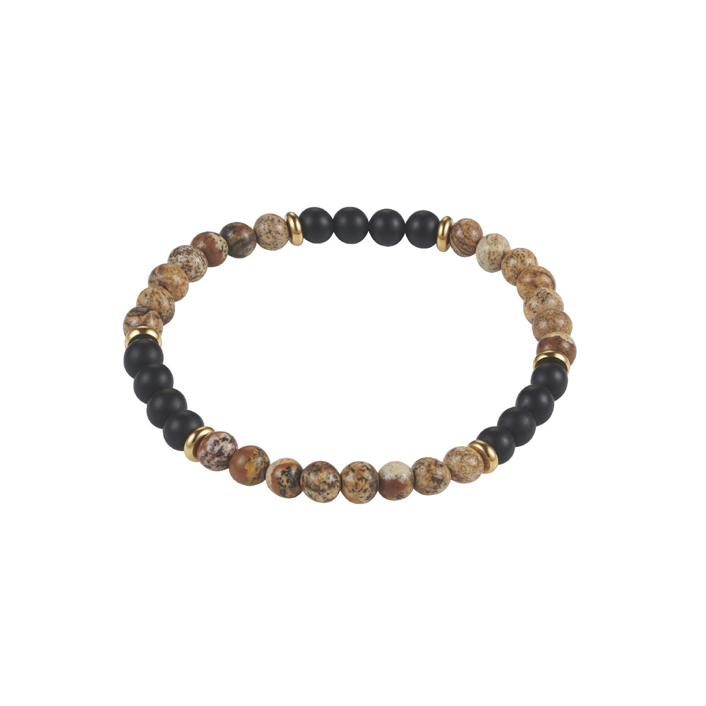 Cudworth 6mm tan jasper and onyx stone beaded IP gold plated stainless steel bracelet.