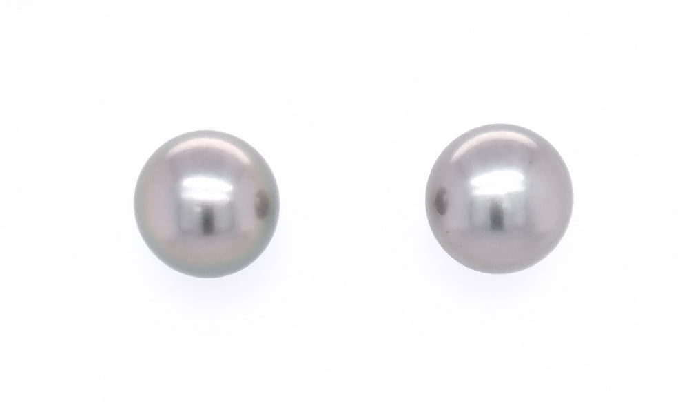 9ct White Gold 12.5-13mm Black Tahitian Pearl Stud Earrings.