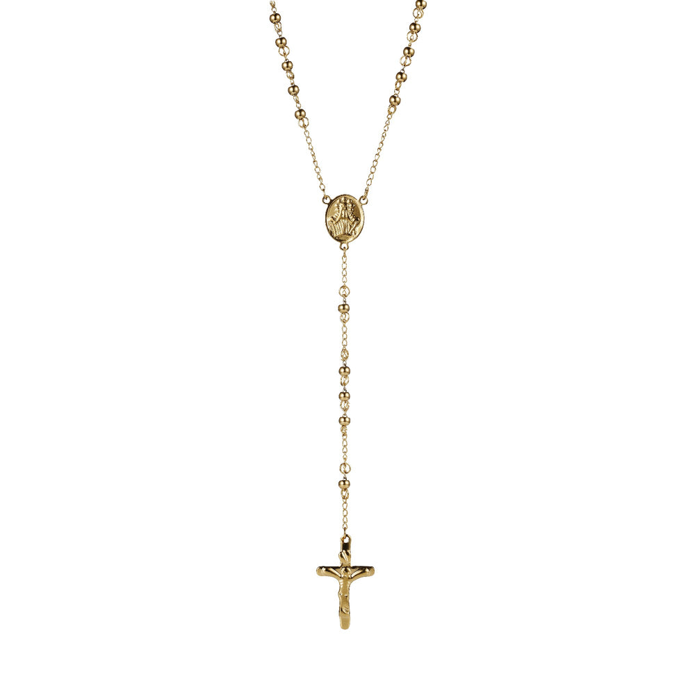 ION plated 14K yellow gold stainless steel rosery bead cross pendant.