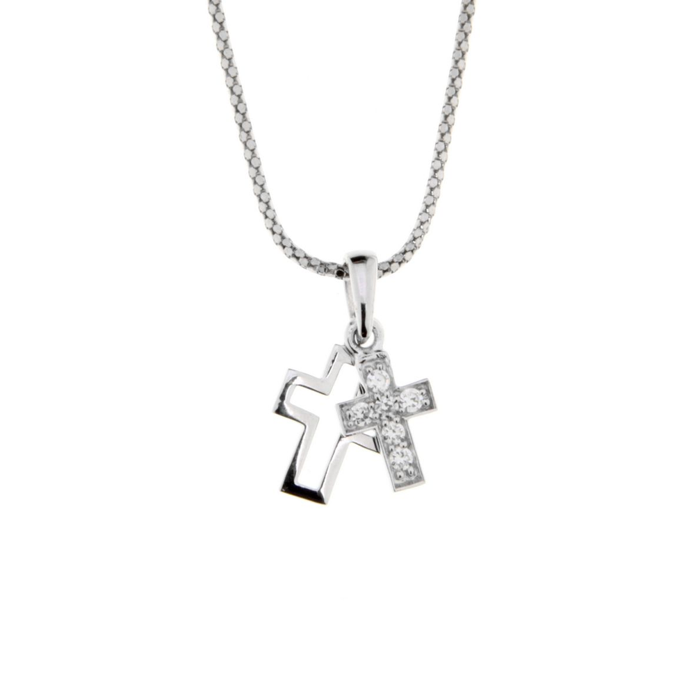 Ellani Sterling Silver Small Cz Double Cross Pendant