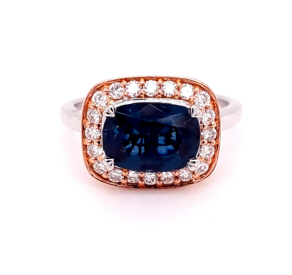 Platinum And 18ct Rose Gold Blue Spinel And Diamond Ring