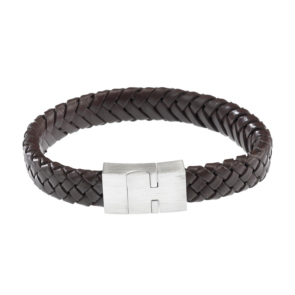 Cudworth brown plated leather bracelet with a stainless steel clasp.