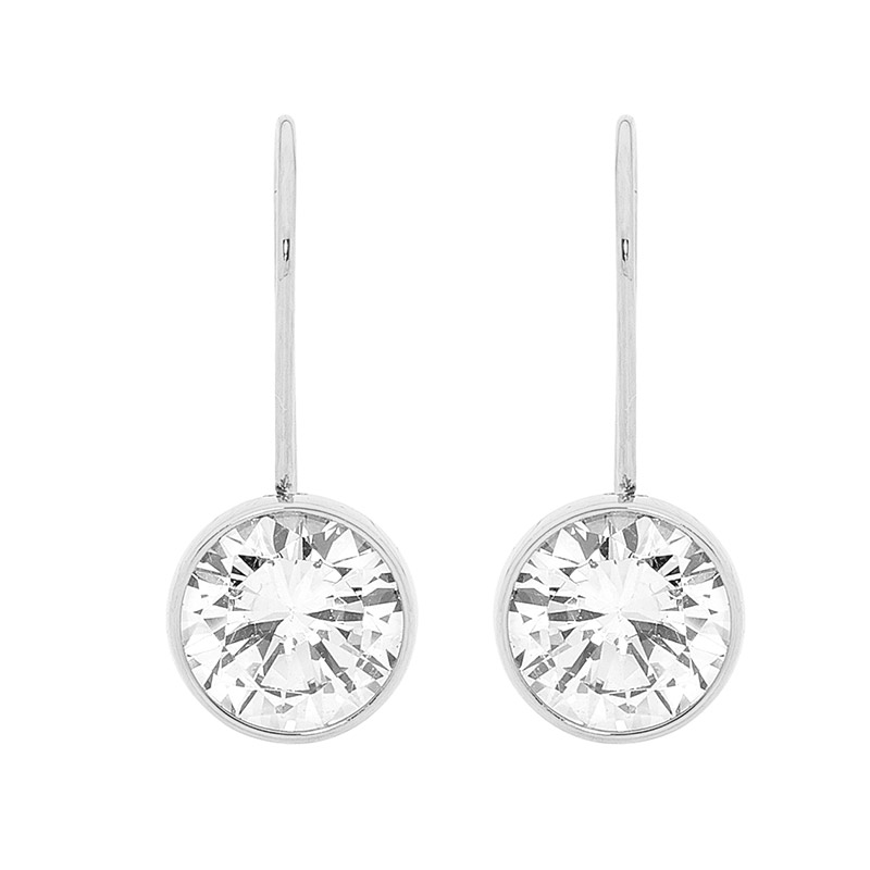 Ellani Stainless Steel Cz Bezel Drop Earrings