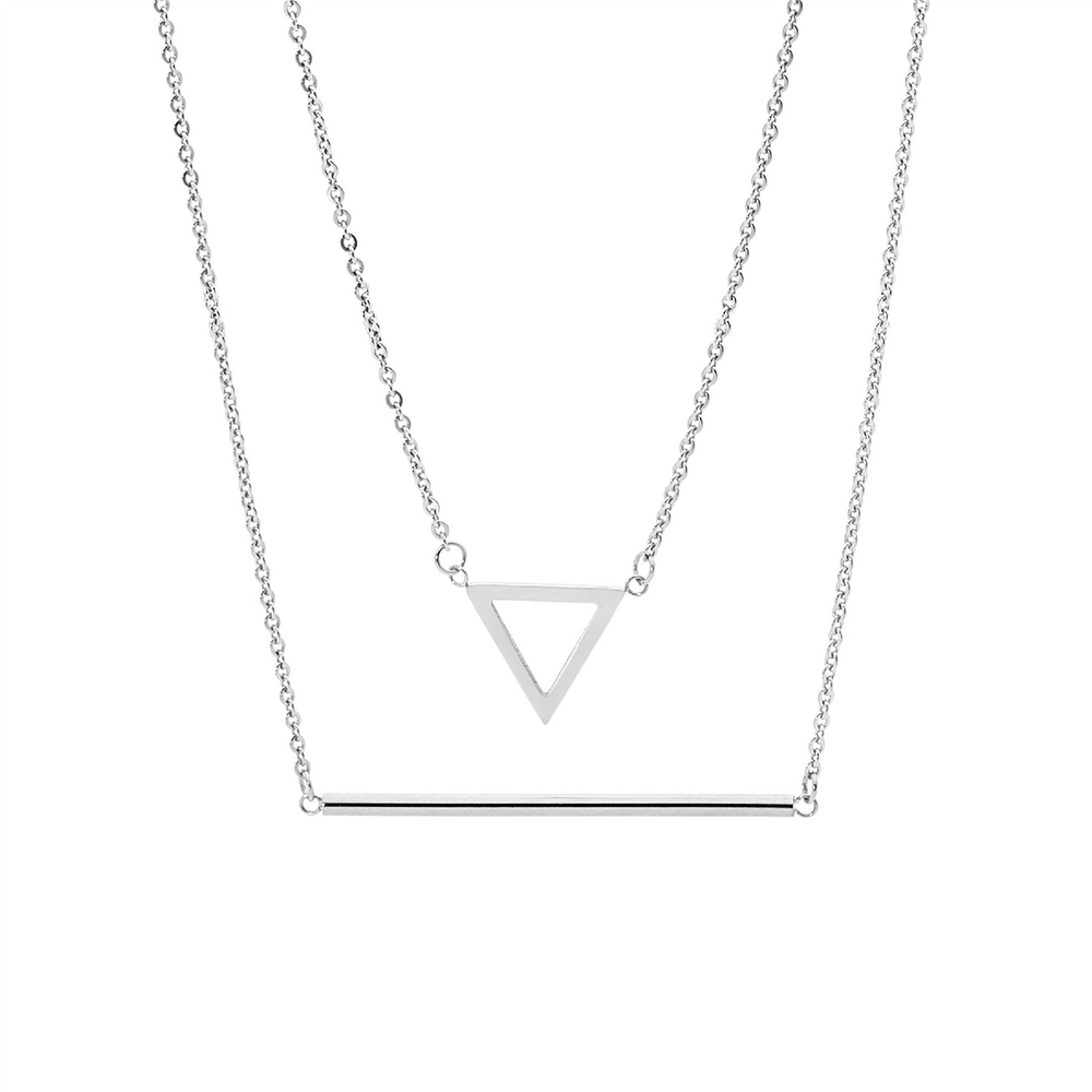 Ellani Stainless Steel Double Chain Open Triangle And Bar Necklace