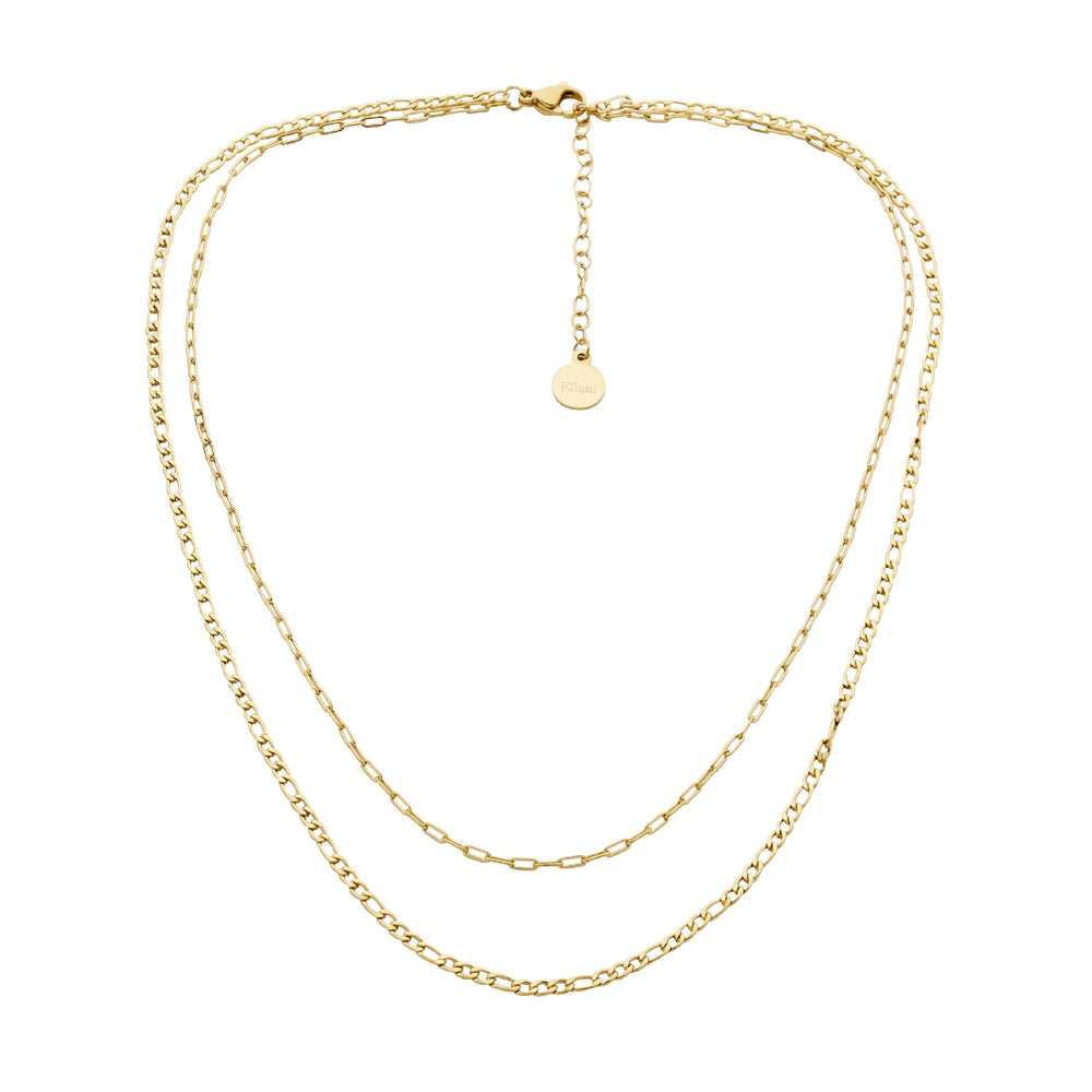 Stainless steel double chain necklace 40 and 45cm with an extension and with yellow gold plating.