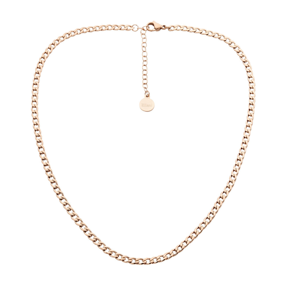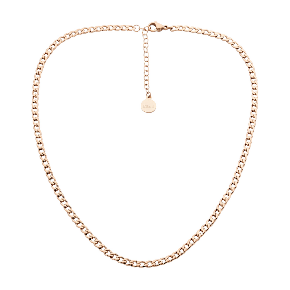 Stainless steel curb chain necklace 40cm with an extension and rose gold plating.