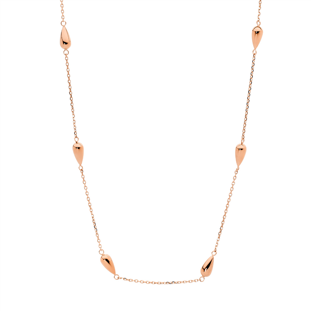 Stainless steel tear drop necklace 40cm with a 5cm extension and rose gold plating.