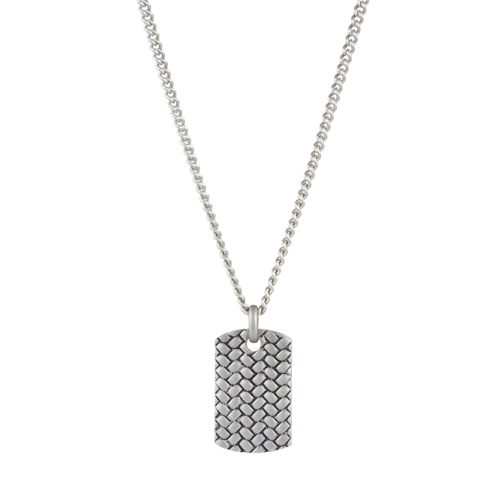 Stainless Steel Sandblasted Tyre Patterned Dog Tag Pendant (55cm Chain)