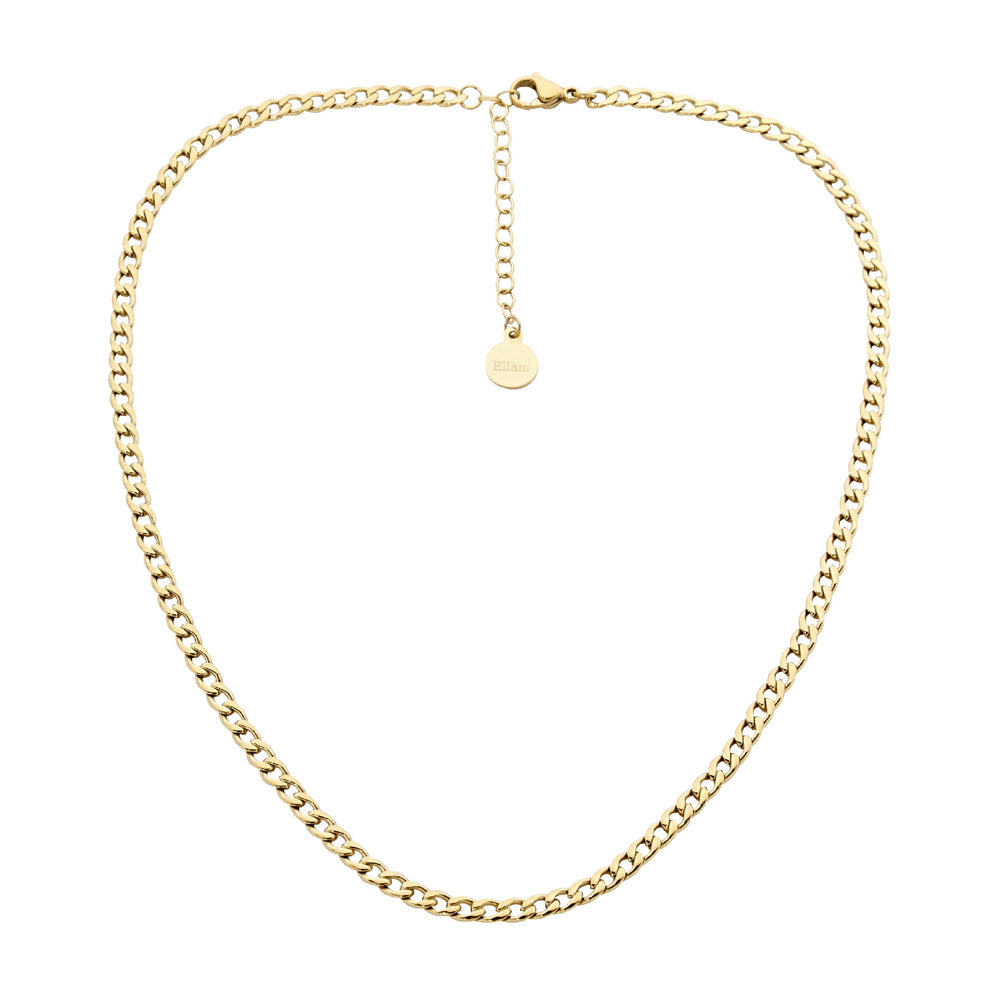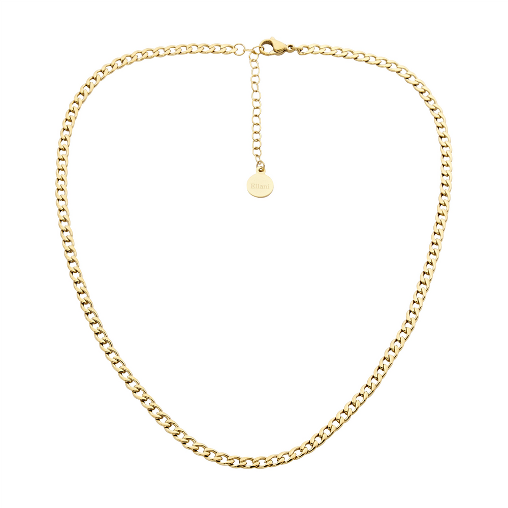 Stainless steel curb chain necklace 40cm with an extension and yellow gold plating.