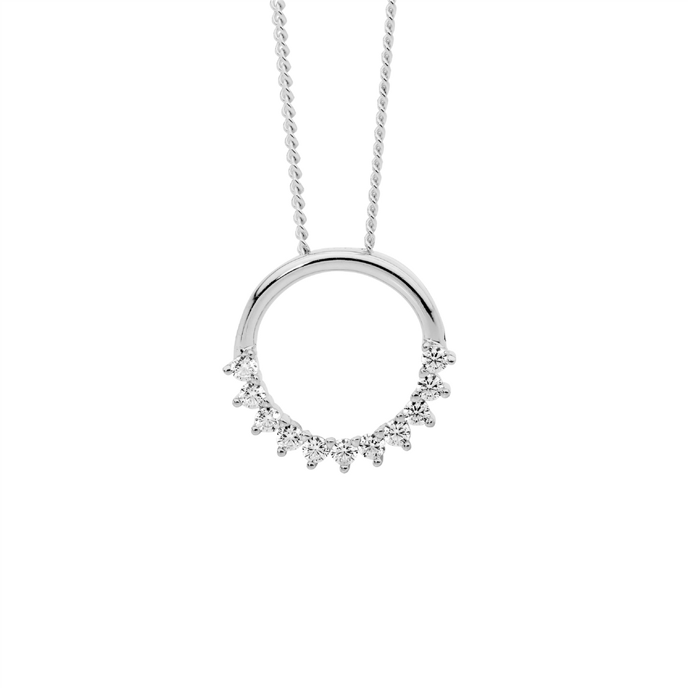Ellani Sterling Silver 12mm Cz Open Circle Pendant 2