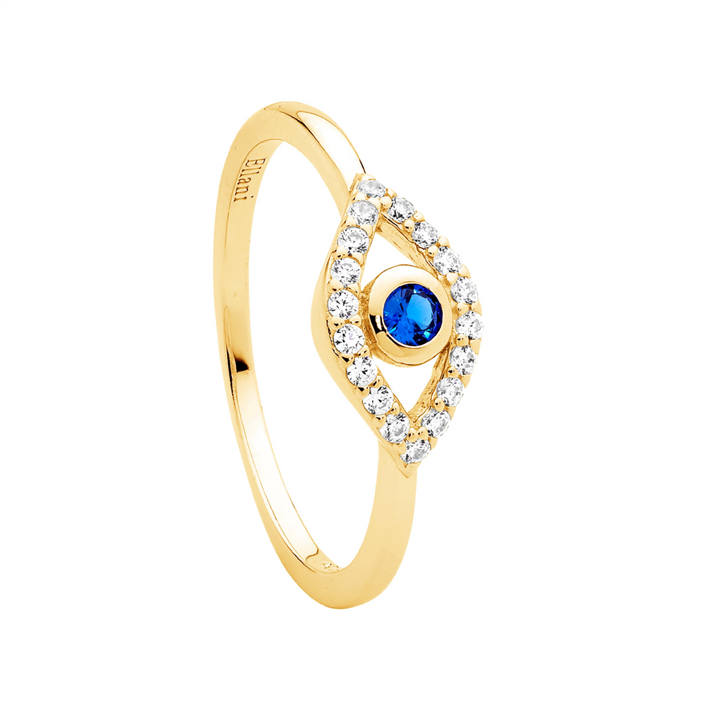 Ellani R509g Ellani Sterling Silver Gold Plated Cz Evil Eye Ring.