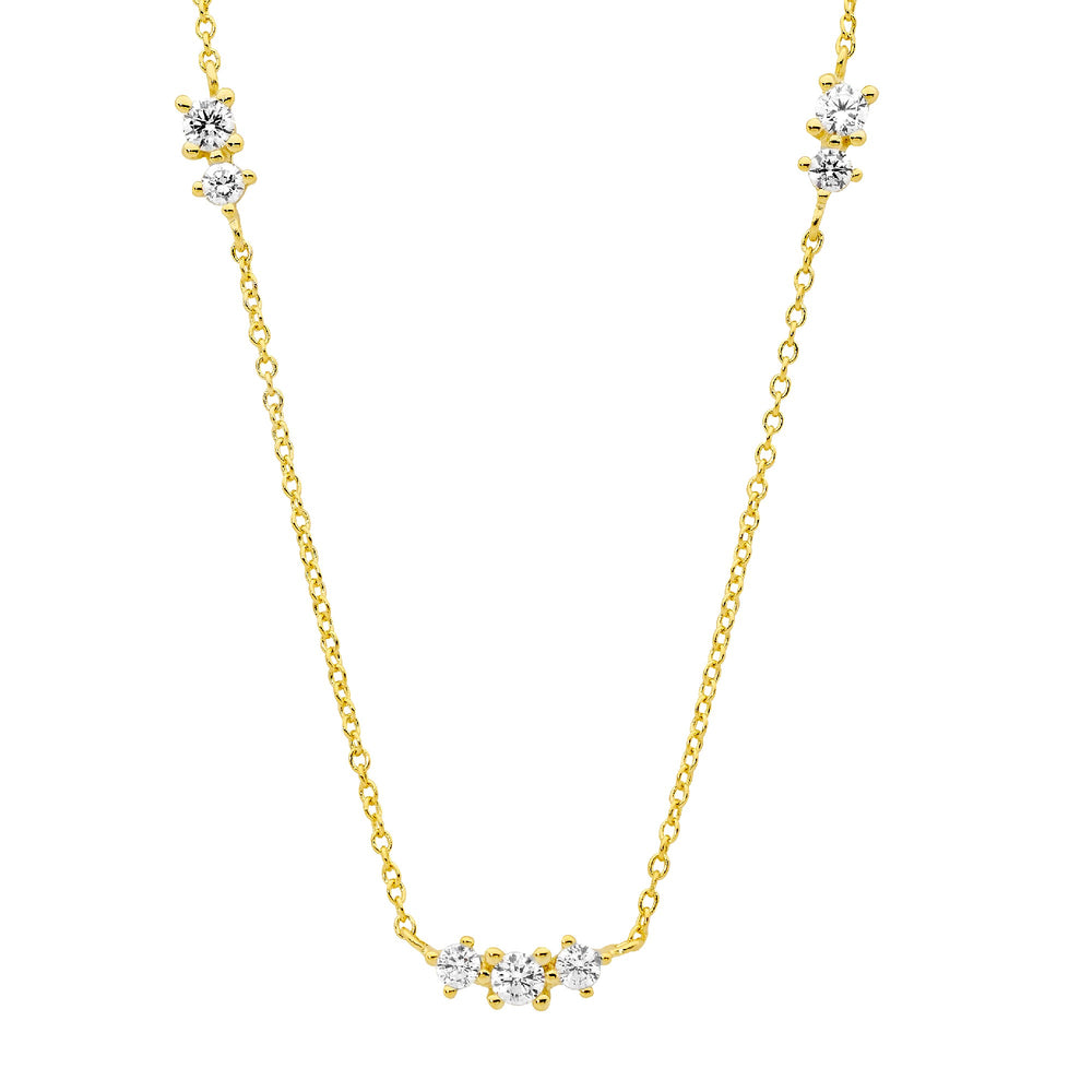 Sterling silver white CZ necklace 40cm with a 5cm extension and gold plating.