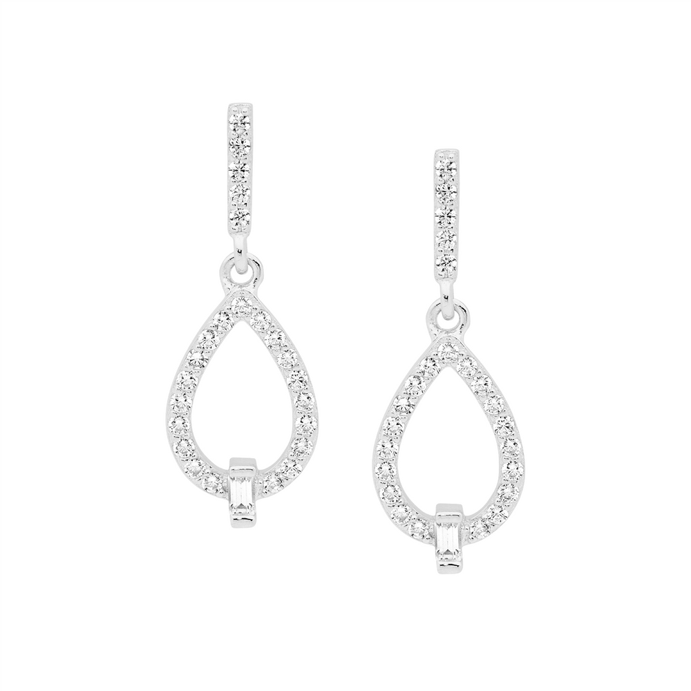 Sterling silver white CZ open tear drop earrings with white CZ baguette's.