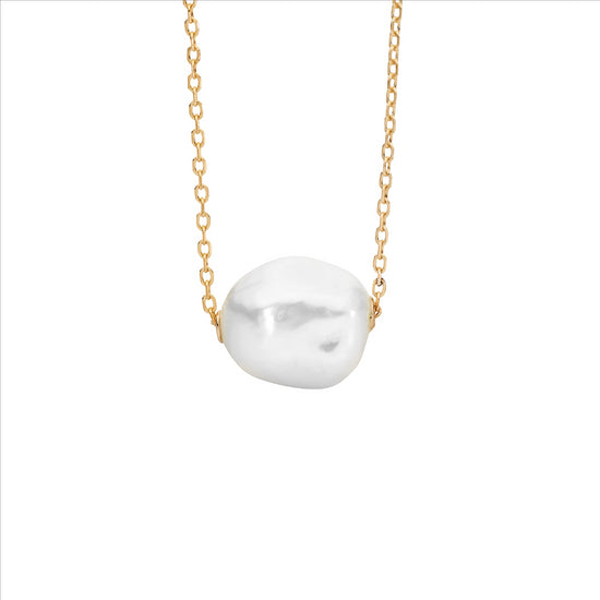 Sterling silver baroque 10-11mm freshwater pearl on 40cm with a 5cm extension chain with yellow gold plating.